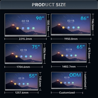 | 用途 | 触摸教学会议一体机 | 屏幕尺寸 | 55寸会议(安卓 4G+32G),65寸会议(安卓 4G+32G),75寸会议(安卓 4G+32G),85寸会议(安卓 4G+32G),86寸会议(安卓 4G+32G),98寸会议(安卓 4G+32G),32寸 i5+8G+256G,43寸 i5+8G+256G,50寸 i5+8G+256G,55寸 i5+8G+256G,65寸 i5+8G+256G,75寸 i5+8G+256G,55寸双系统(电脑i5+8G+256G 安卓4G+32G),65寸双系统(电脑i5+8G+256G 安卓4G+32G),75寸双系统(电脑i5+8G+256G 安卓4G+32G),85寸双系统(电脑i5+8G+256G 安卓4G+32G),86寸双系统(电脑i5+8G+256G 安卓4G+32G),98寸双系统(电脑i5+8G+256G 安卓4G+32G),110寸双系统(电脑i5+8G+256G 安卓4G+32G)(寸) |