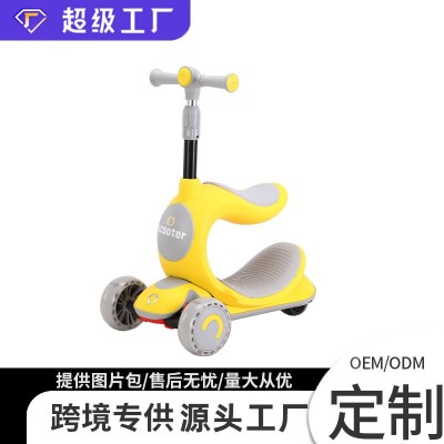 发光轮儿童三合一滑板车可坐可滑溜溜车2-8岁男女孩滑滑车防侧翻
