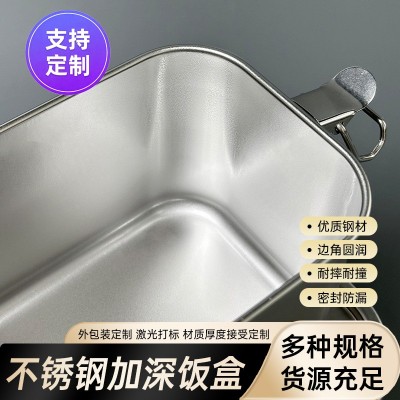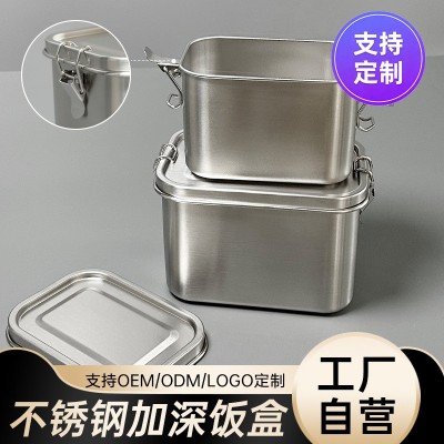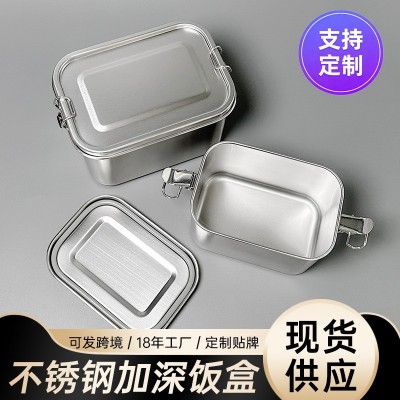1500ml卡扣带盖食物储存便当加厚加深优质304不锈钢方形保鲜饭盒