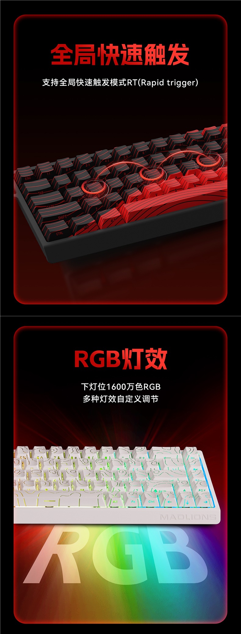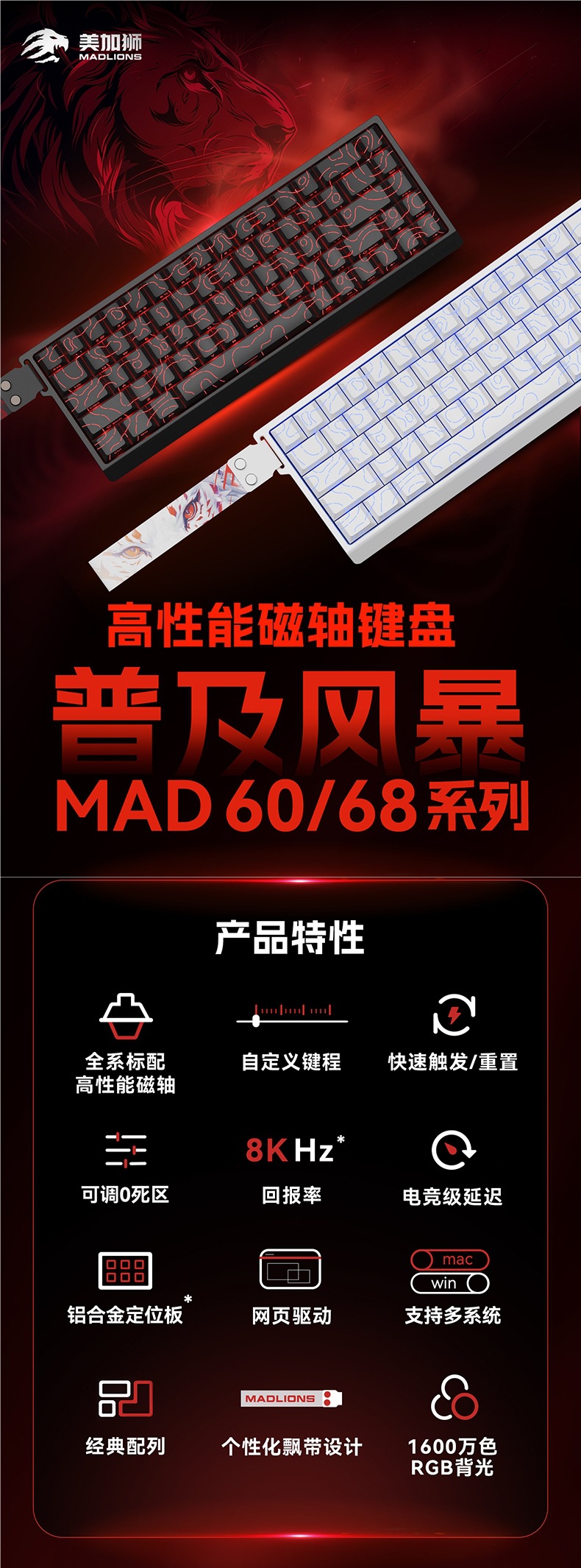 美加狮MAD60/68 HE电竞磁轴键盘mad68pro游戏专用机械键盘61/68键