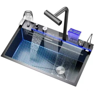 首页 > 家用电器 / 厨房电器 / 大家电 > 五金家装 > 水槽 > 厨房水槽加厚洗菜盆钢琴蜂窝龙鱼厨房单槽数显瀑布飞雨不锈钢水槽
