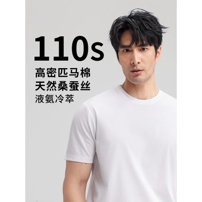 高端110支桑蚕丝男t恤免烫液氨凉感半袖宽松苏匹马棉白色T恤衫