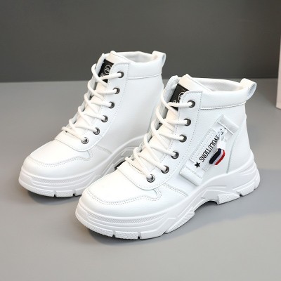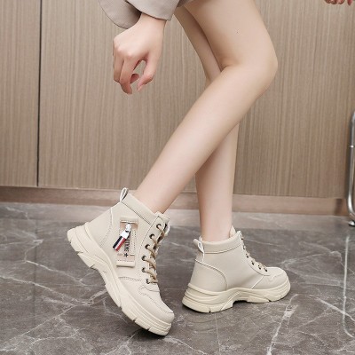 新款纯色女鞋2023秋季韩版透气增高厚底运动休闲鞋板鞋中帮