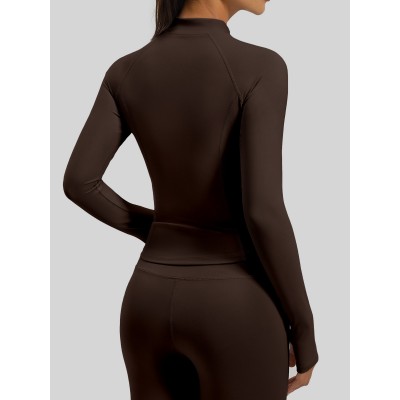 新款侧口袋瑜伽服修身显瘦健身上衣双拉链跑步运动外套女