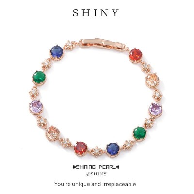时尚热销爆款重工镶大克拉彩色锆石手链轻奢时尚饰品高档手链