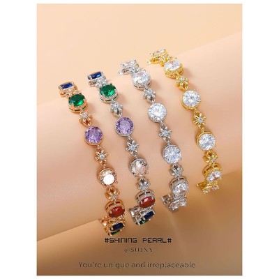 首页 > 男装 / 女装 / 内衣 > 服饰配件 > 配饰 > 时尚热销爆款重工镶大克拉彩色锆石手链轻奢时尚饰品高档手链