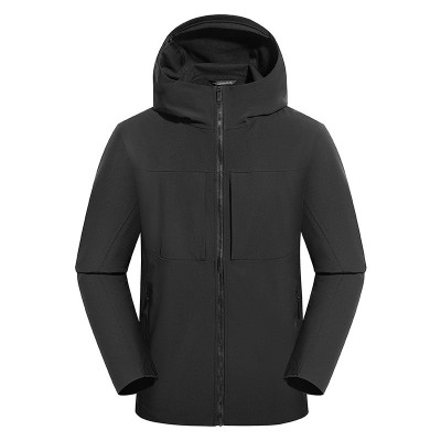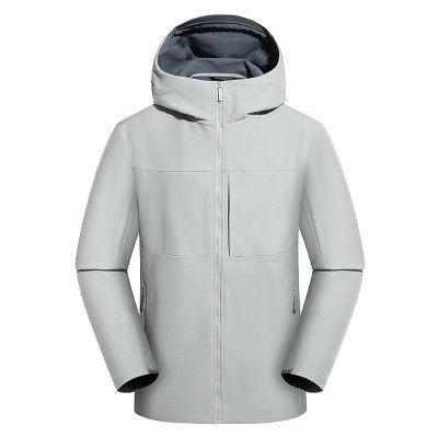 2025新款无标爆款男女防风连帽软壳衣登山纯色冲锋衣户外夹克保暖