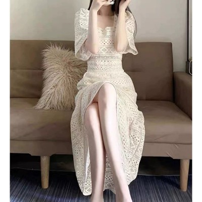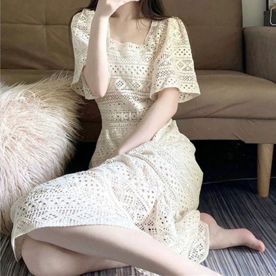 首页 > 男装 / 女装 / 内衣 > 女装 > 连衣裙 > 收腰白色连衣裙女新款茶歇方领气质修身裙子