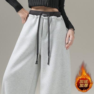 加绒加厚香蕉阔腿裤女秋冬新款垂感直筒运动裤子宽松美式休闲卫裤 秋冬休闲