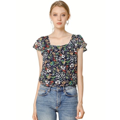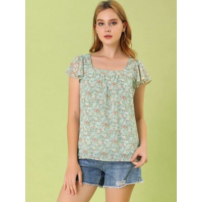 首页 > 男装 / 女装 / 内衣 > 女装 > 蕾丝/雪纺衫 > 2026跨境新款欧美女式碎花上衣2024夏季休闲方领雪纺衫
