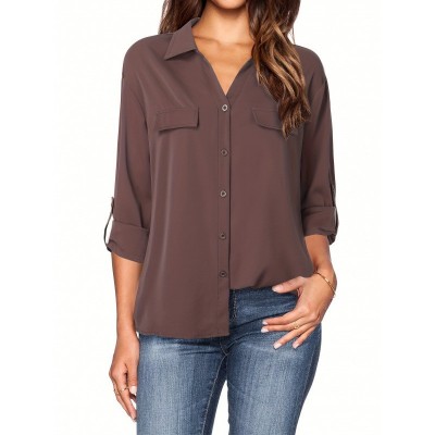 2026新款跨境代发雪纺衬衫雪纺Polo领女装跨境代发