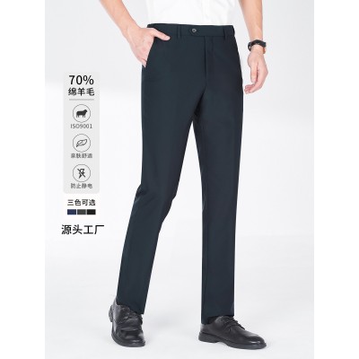 西裤男直筒春秋商务正装西服长裤子西装裤子职业装羊毛抗静电