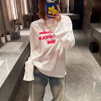 正确版型2026春夏新款ac植绒字母印花套头长袖T恤简约男女款内搭